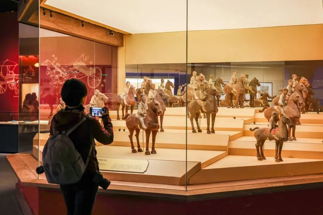 马年“话”马,各博物馆推出的生肖主题展览人气旺。市民游客纷纷到博物馆里寻“马”,解锁春节新玩法。从商代刻有“马”字的甲骨残片,到秦代的鞍马俑、西汉的木胎漆马,再到唐三彩黑釉陶马、宋代《狩猎图》、清代《十八骏图卷》……走进中国国家博物馆“跃马扬鞭——马年新春文化展”,各个时期不同的马形象让人目不暇接。