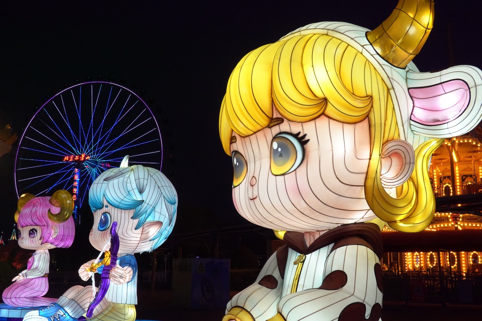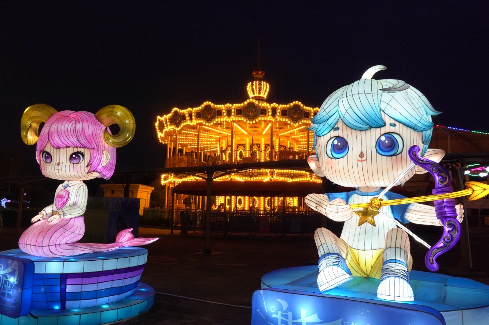 本届灯会通过非遗彩灯打造七大主题展区、六大互动场景。在灯组设计上,石景山游乐园京彩彩灯游园会将非遗彩灯与萌物、国潮、蒸汽朋克等众多年轻潮流文化元素进行跨次元融合,打造形成酷玩启幕、萌物夜行、青春无限、幻想共生、国潮百戏、奇趣撒野、奇想童话共七大板块,用灯光为游乐注入全新的沉浸体验。
