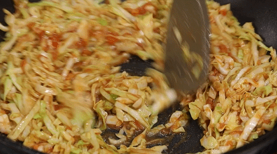 暖暖大厨有两个绝招:第一就是过油炸,去除水分,炒出来又香又脆爽;还有一种方法,比较家常,而且极其简单:用猛火炒,这样才能将圆白菜的汤汁全部锁住。