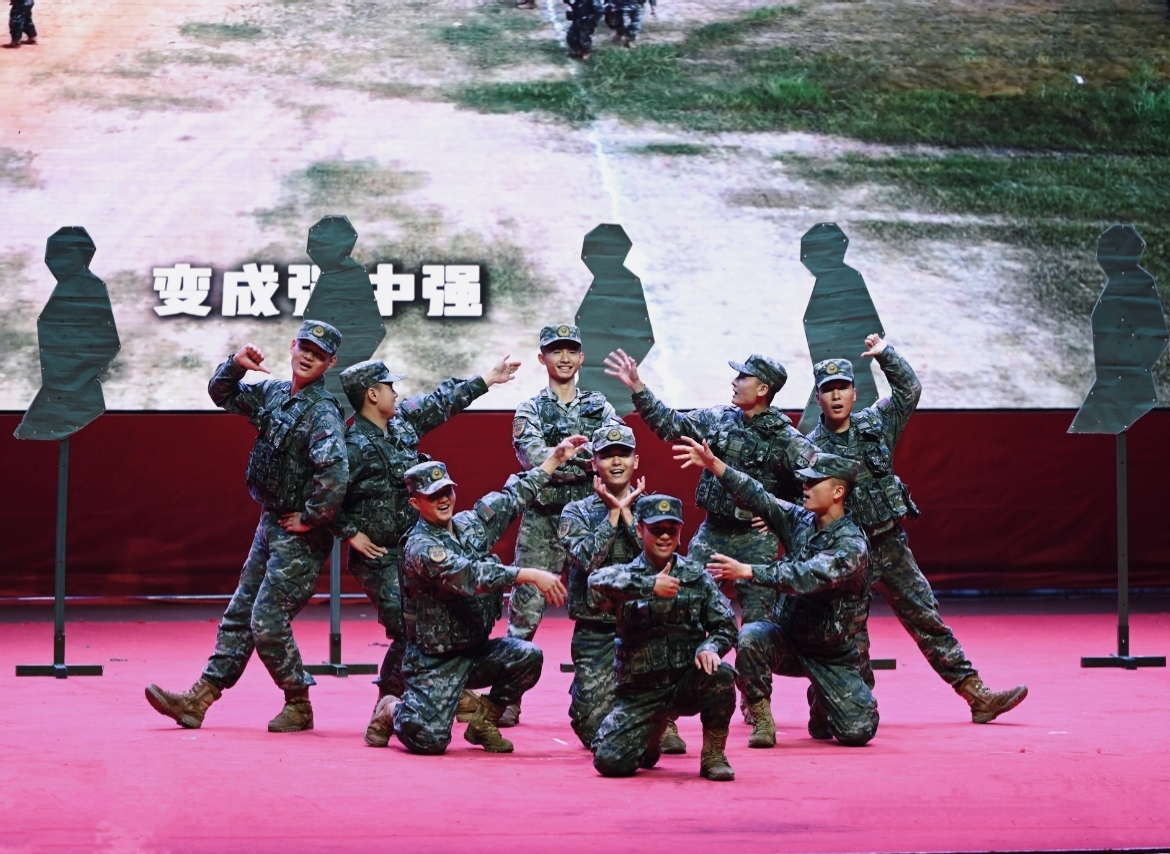 表演唱《我们班有一条硬杠杠》生动阐释了新时代带兵人以争先创优为纽带,用公平评比激发每份热忱,让同志在比拼中互促共进,而非各自为战的带兵故事。彰显出不服输的劲头,更传递团结协作、携手向优的班级底色,让集体荣光在良性竞争中绽放。