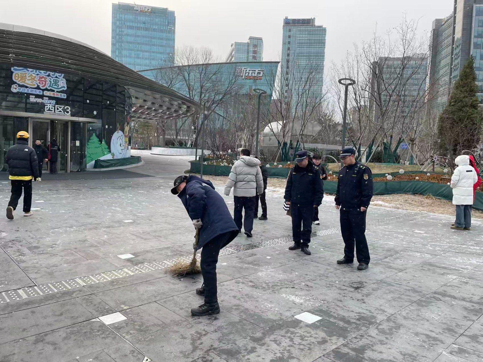 海淀城管筑牢雪天安全防线 督导商圈地铁周边扫雪铲冰