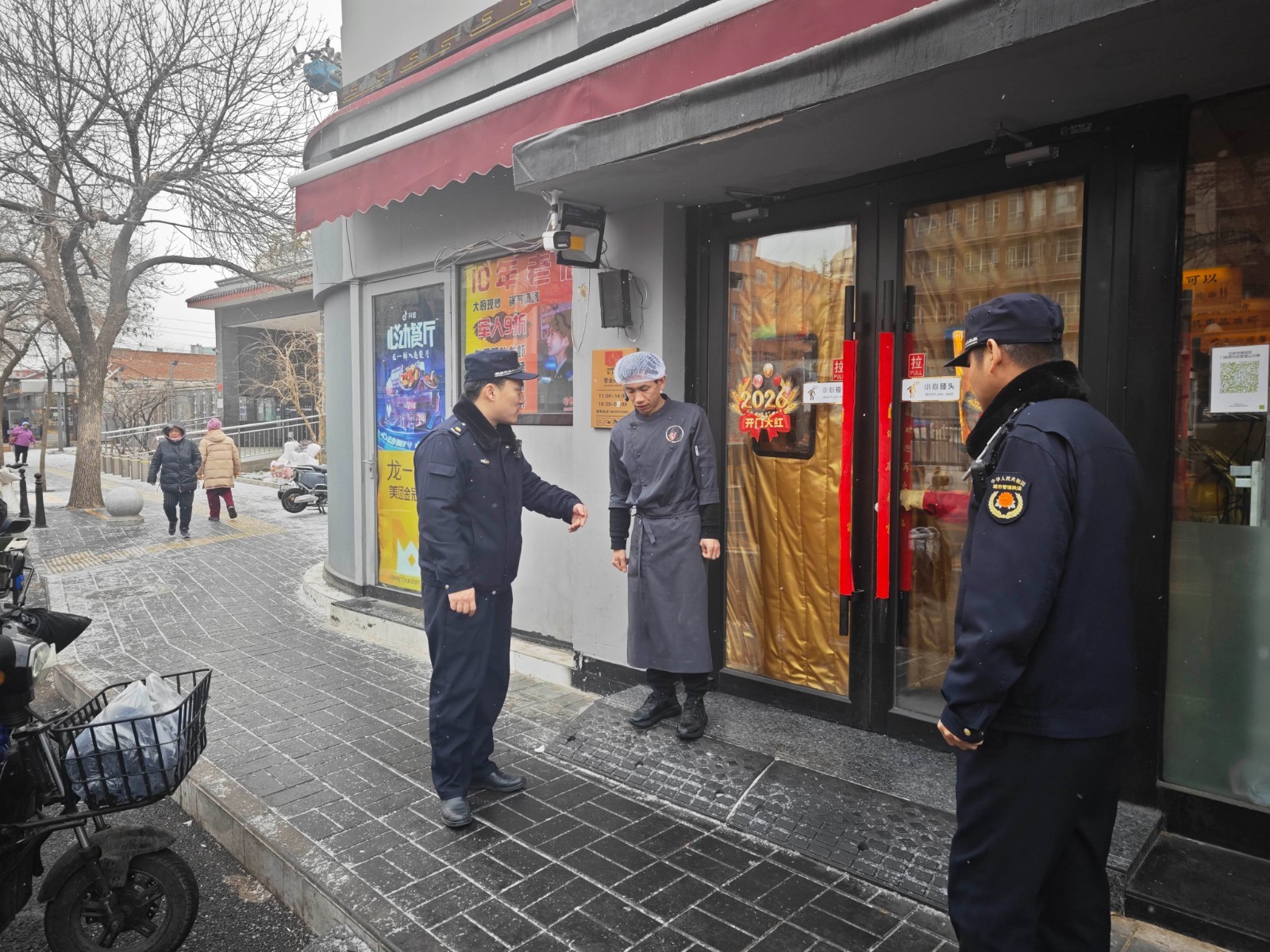 (记者 王伟)雪情就是命令。1月17日一早,天空开始零星飘雪,海淀城管执法系统迅速行动起来,执法队员对辖区门前三包单位逐一提示,要求细化扫雪铲冰措施,避免道路结冰干扰正常通行秩序,切实守护市民出行安全。