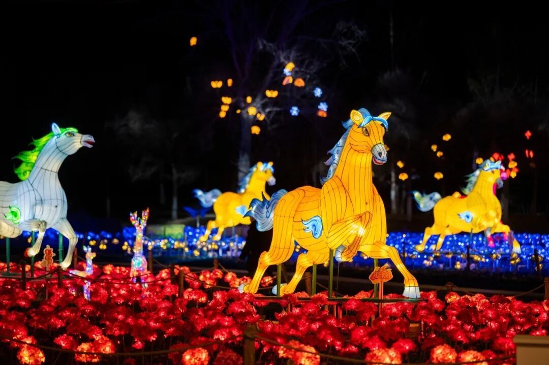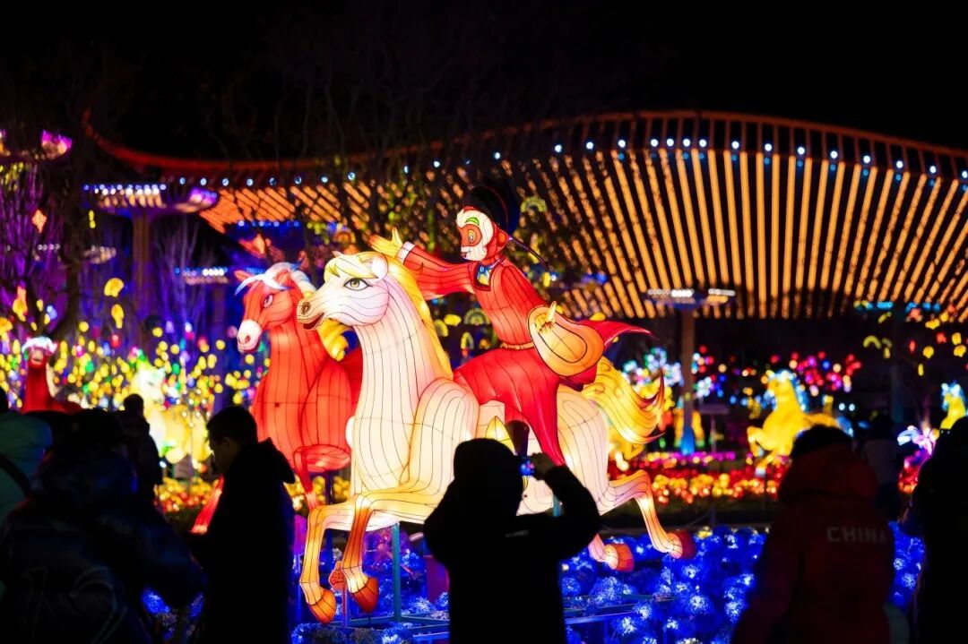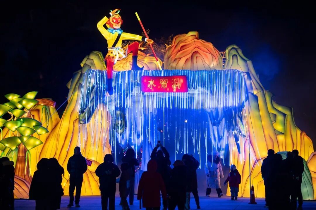 “天宫灯会”是本届花灯艺术节的核心主题,同时也是《大闹天宫》动画IP首次以花灯形式与公众见面。据悉,本届花灯艺术节将持续至3月8日,历时45天。“天宫灯会”共设计制作了50余组大型花灯,游览路线长达2.5公里,其中大部分花灯组是以动画电影《大闹天宫》为蓝本设计制作,包括经典人物、场景、器物造型。作为融合中国古典建筑美学的园林公园,北京世园国际旅游度假区一直在探索如何精准具象表达中国传统文化,让游客在体验过程中产生深刻共鸣、感受中华文化的魅力。将《大闹天宫》与非遗花灯的结合就是一次全新的尝试,传统动画通过花灯这一表达方式,变成可观赏、可触摸、可互动、可共鸣的文化符号。