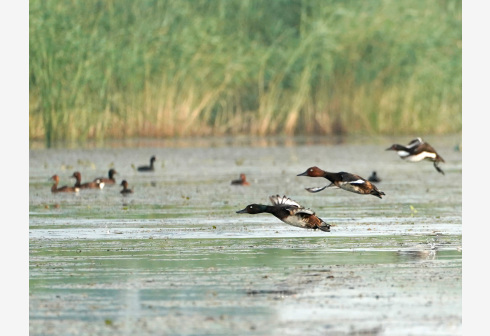 这是在白洋淀淀区拍摄的青头潜鸭与白眼潜鸭混群 新华社记者 邢广利 摄