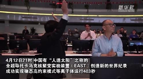 4月12日晚,经过十几年聚力攻关,EAST成功实现稳态高约束模式等离子体运行403秒,刷新2017年的101秒世界纪录,实验现场一片欢腾。