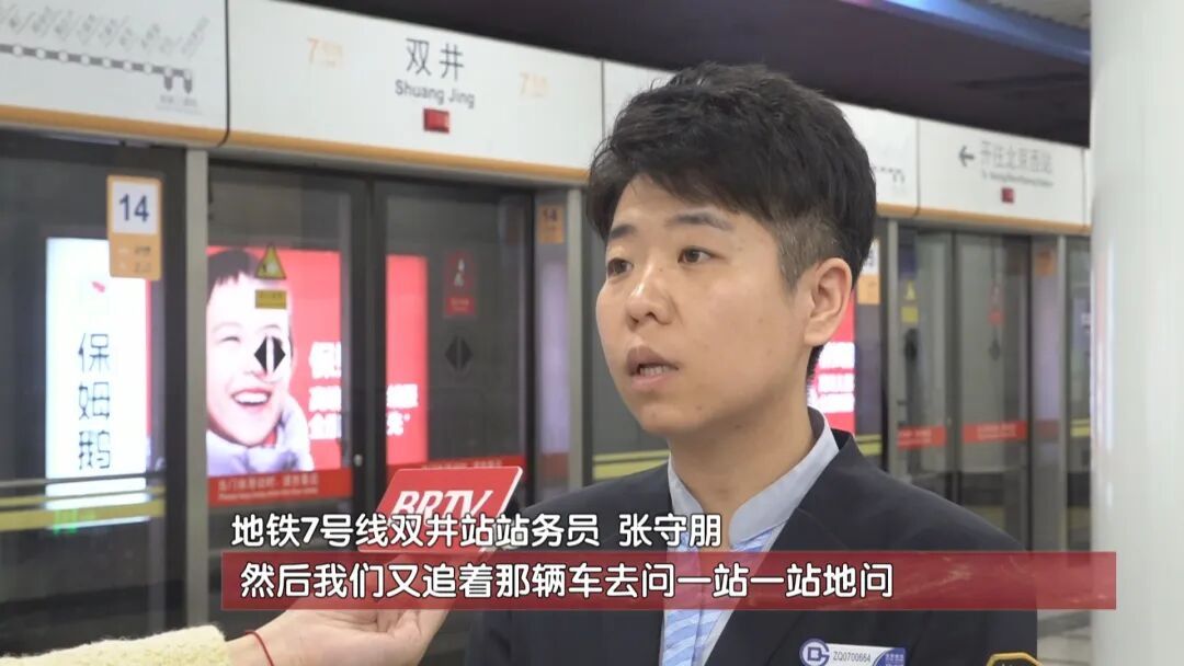 张守朋得知情况后,第一时间将此事汇报给值班站长刘云侠。为尽快帮乘客找回手机,刘云侠立刻联系九龙山站,同时发动双井站员工共同寻找,还同步联系了7号线终点站北京西站,遗憾的是,三站经过排查均未发现手机踪迹。乘客提出想查看车站录像,刘云侠随即协助联系车站派出所。通过九龙山站站台录像回放,发现乘客当时将手机放在行李箱上,列车到站后乘客拉着行李箱就匆忙上车了,但乘客上车后未发现那部手机的踪迹。