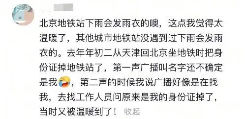 “工作人员的应对能力和服务能力让一个外地旅客深入内心,这是一座城市的温度,一座城市的形象,也是北京地铁专业度的体现......”