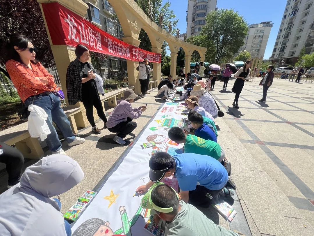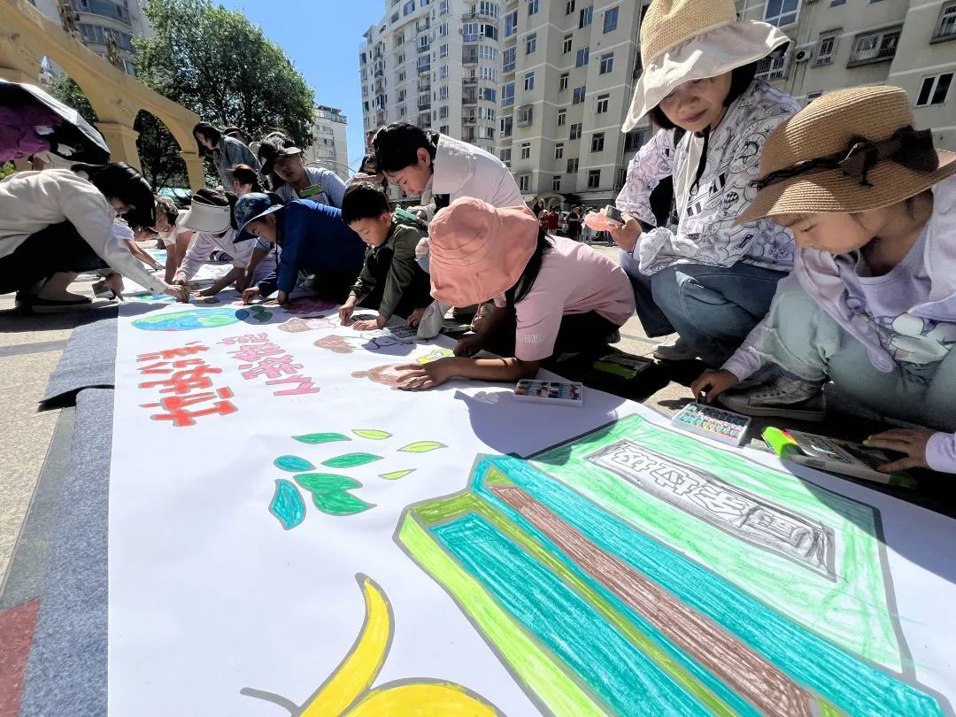 绘画作品展示的同时,参加活动的家长和孩子们也参加了垃圾分类亲子涂鸦活动,通过绘长卷的方式,引导孩子们从小养成垃圾分类的良好习惯。