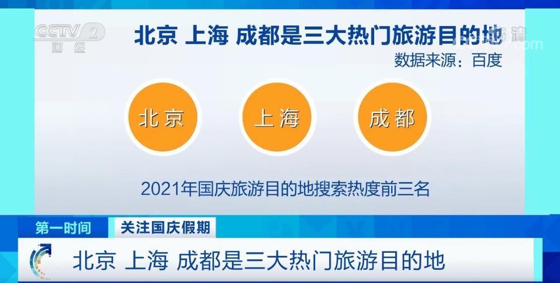 某网站热搜大数据整理了今年国庆旅游目的地搜索热度结果:北京、上海、成都位列前三,重庆、三亚、长沙等长期热门的旅游城市也相继入榜。除了北京环球度假区外,上海迪士尼乐园、深圳欢乐谷、广州长隆欢乐世界也很受欢迎,是95后年轻人的游玩胜地。