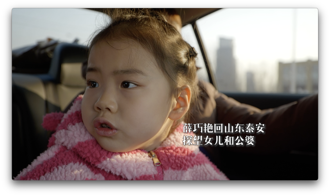 她比我在视频报道中看到的气色要好一些。简单寒暄后,我们就一起乘车前往栾留伟的出生地——泰安市宁阳县良村。栾留伟的三叔要给孙子办满月宴,薛巧艳带着公婆和女儿前往祝贺。摄影师坐副驾,我和薛巧艳的婆婆以及4岁的二女儿瑶瑶坐后座。我的小女儿只比瑶瑶小半岁,在我送了她两个小礼物之后,我们很快就熟悉了起来。在下车前,瑶瑶已经邀请我晚上要住她家了。