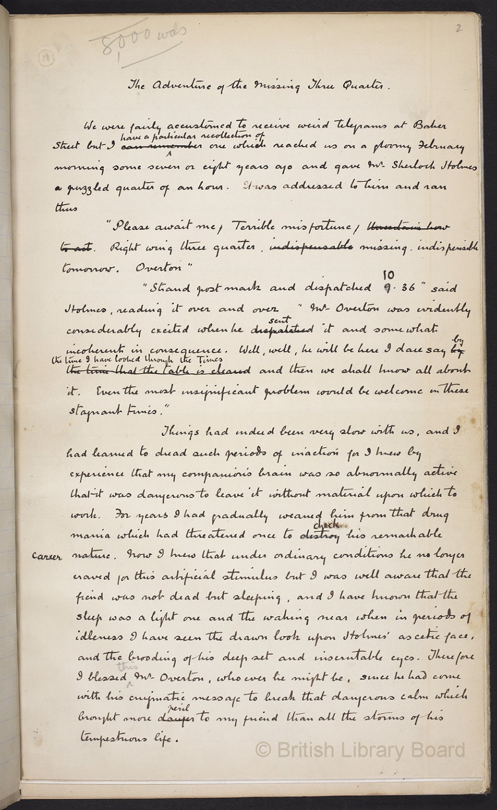 阿瑟·柯南·道尔——《失踪的中卫》手稿(大英图书馆供图)
