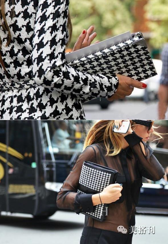 千鸟格的贵族气质是很多潮人爱它的理由。但是不同时期的设计和剪裁上都有不同的革新。用千鸟格做配件,时尚感也是妥妥的,选择一款千鸟格的手拿包,走在路上也能彰显你的气质。▲