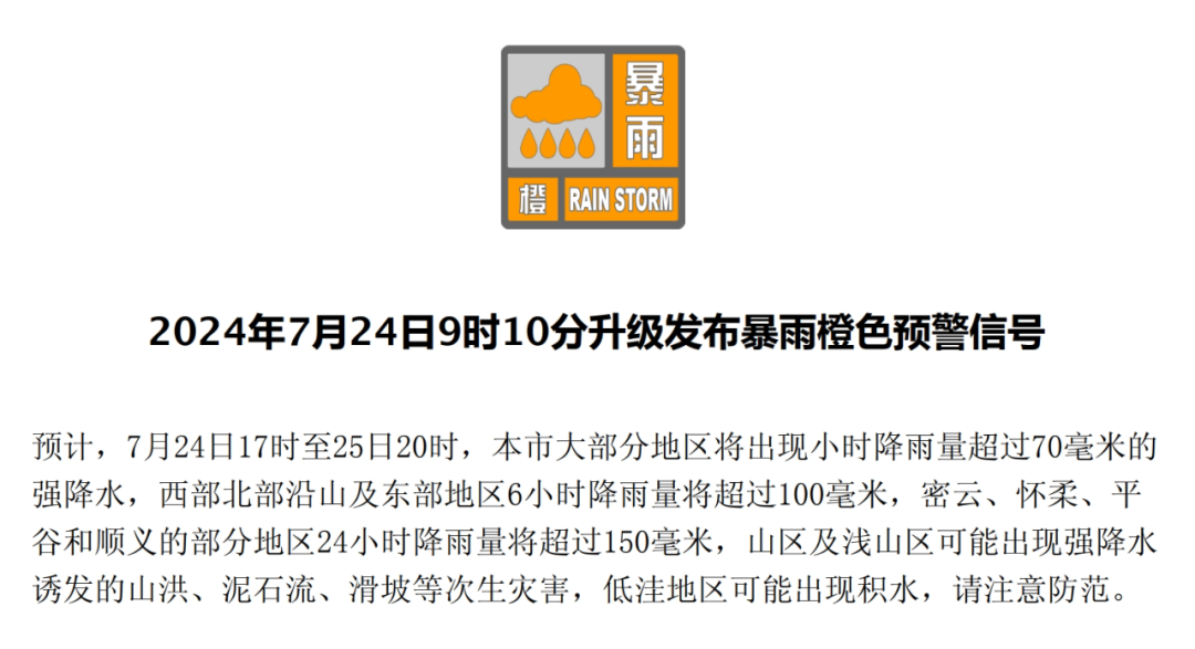 市气象台升级发布暴雨橙色预警信号 更多分区预警看这里!_北京时间