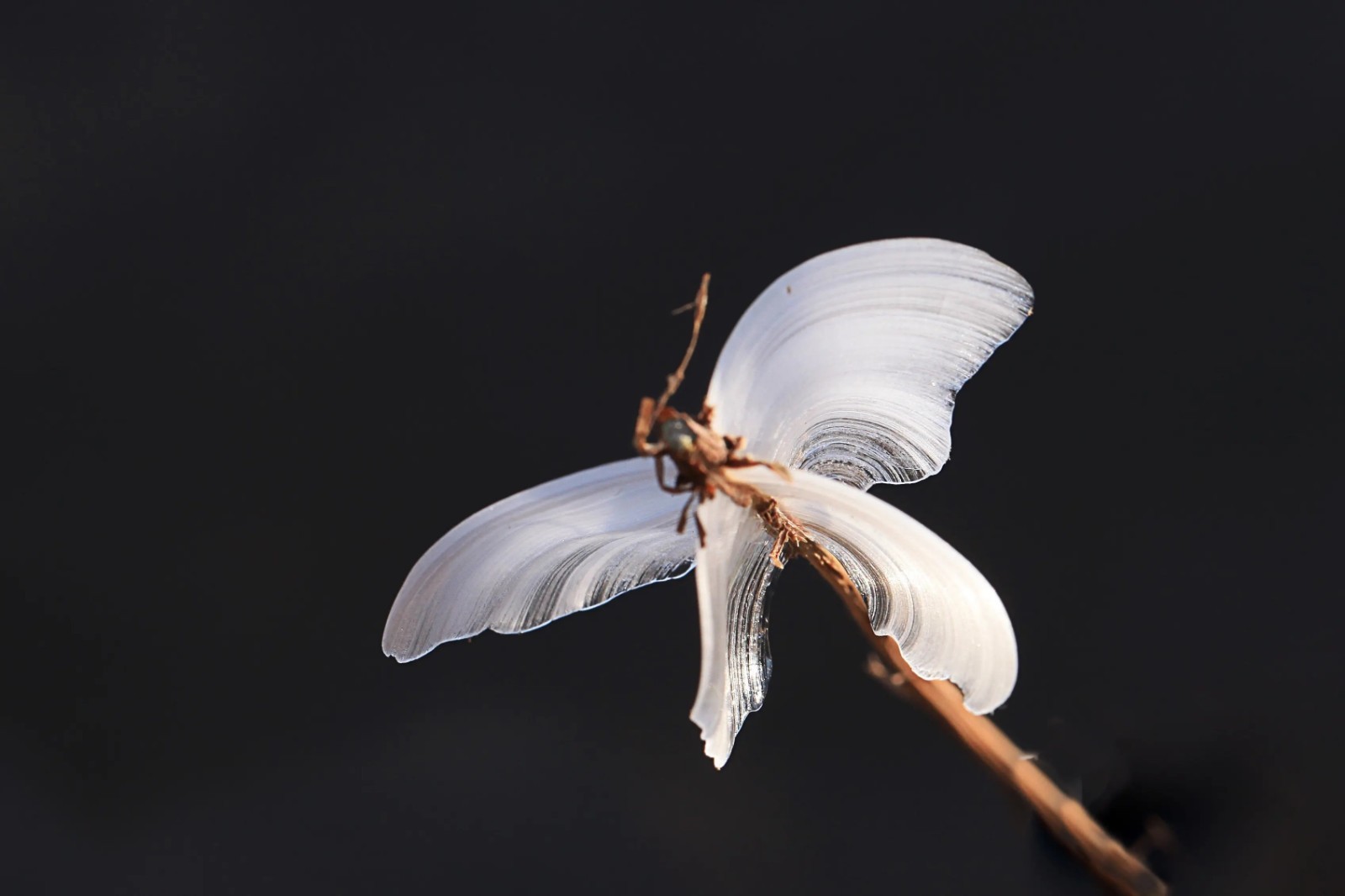 受降温影响,近日,在山西省侯马市斗龙沟村,漫山遍野结出纤薄冰片,晶莹剔透、形态各异,好像蝴蝶翩然而至,因此被称为冰蝴蝶。 冰蝴蝶作为一种自然景观,常形成于每年12月到次年2月,当温度、湿度、风力都适宜时,山间的薄荷草上就会结出如同蝴蝶一样的纤薄冰片,吸引来众多摄影爱好者和游客。