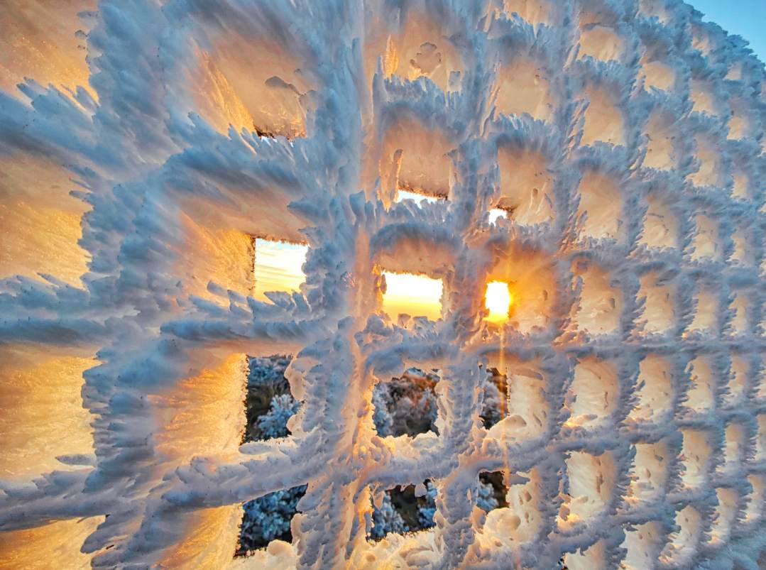 红日映雾凇,山间“飞”冰蝶!这些冬日限定美景简直绝绝子→