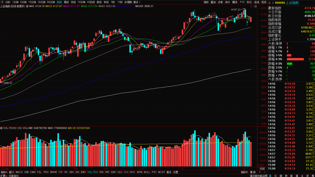 今天指数震荡回升,三大指数低开高走集体翻红,沪指站上了20日均线。指数表现不错,但是量能出现了明显逐级萎缩。量价出现了背离,这是指数出现短期风险还是继续安全的信号?