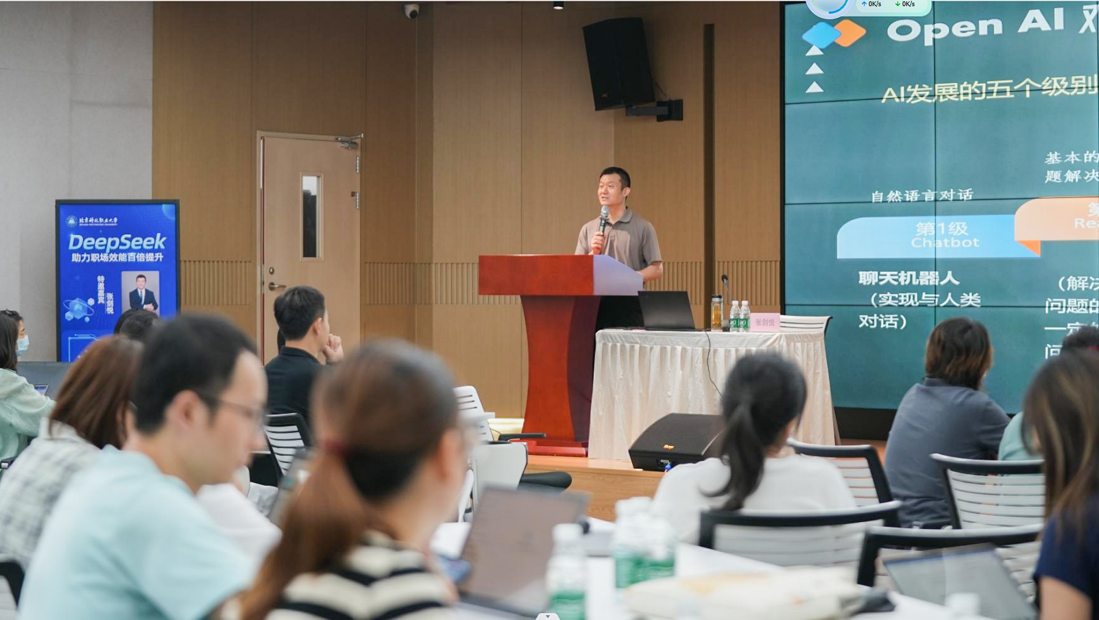 7 月 10 日,由北京科技职业大学图书馆暨北京经济技术开发区公共图书馆主办的 “DeepSeek 助力职场效能百倍提升” 专业知识讲座在中国(北京)视听产业园报告厅顺利举行。