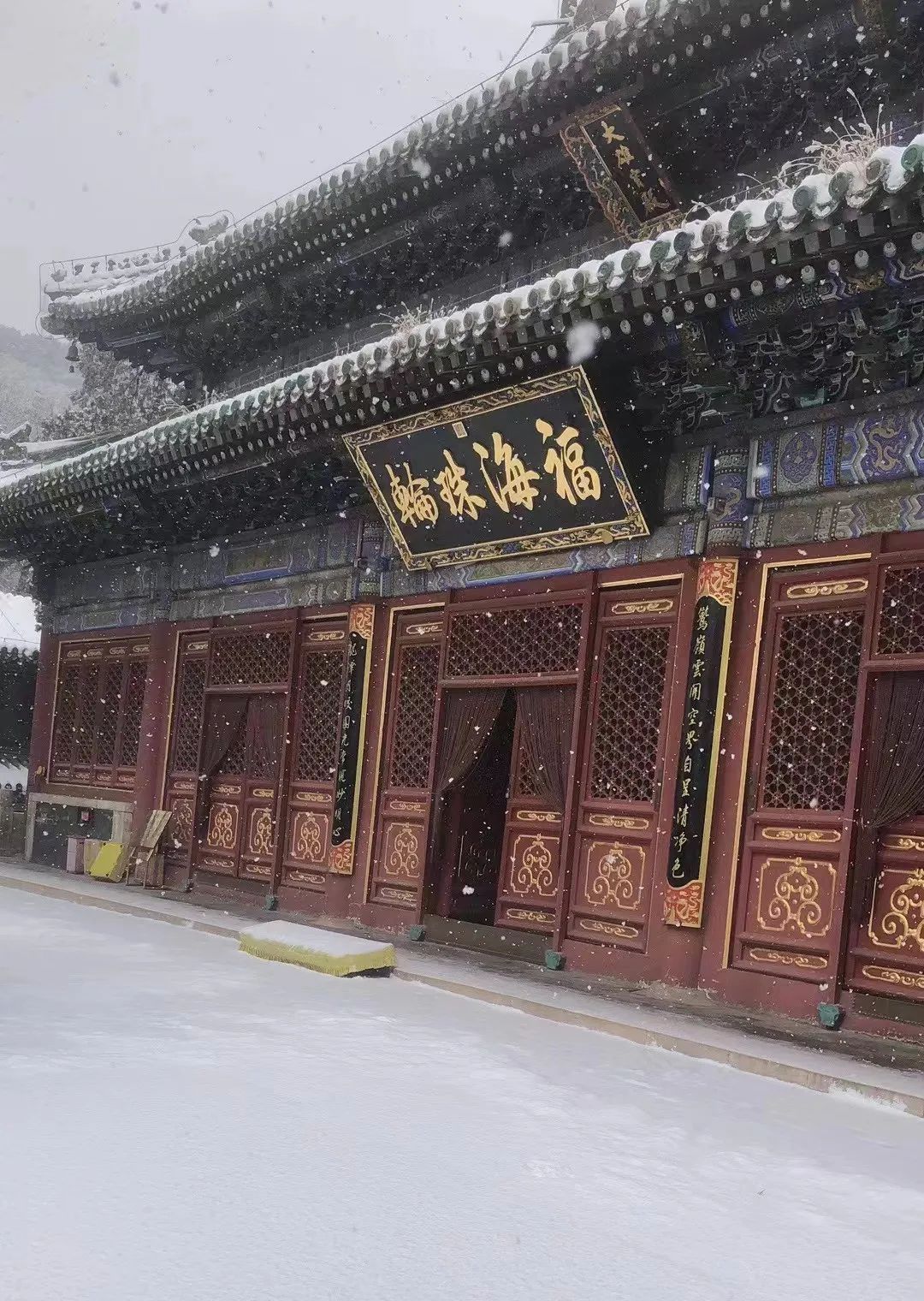 雪天道路湿滑,请您选择适合的出行方式,保障出行安全,潭柘寺景区静候您的到来!