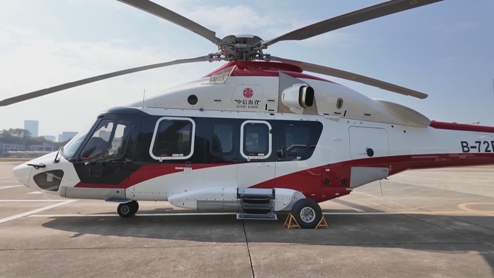 该航线由中信海直执行试飞,执飞机型为法国空客EC175B直升机,可搭载10名乘客及2名机组人员。