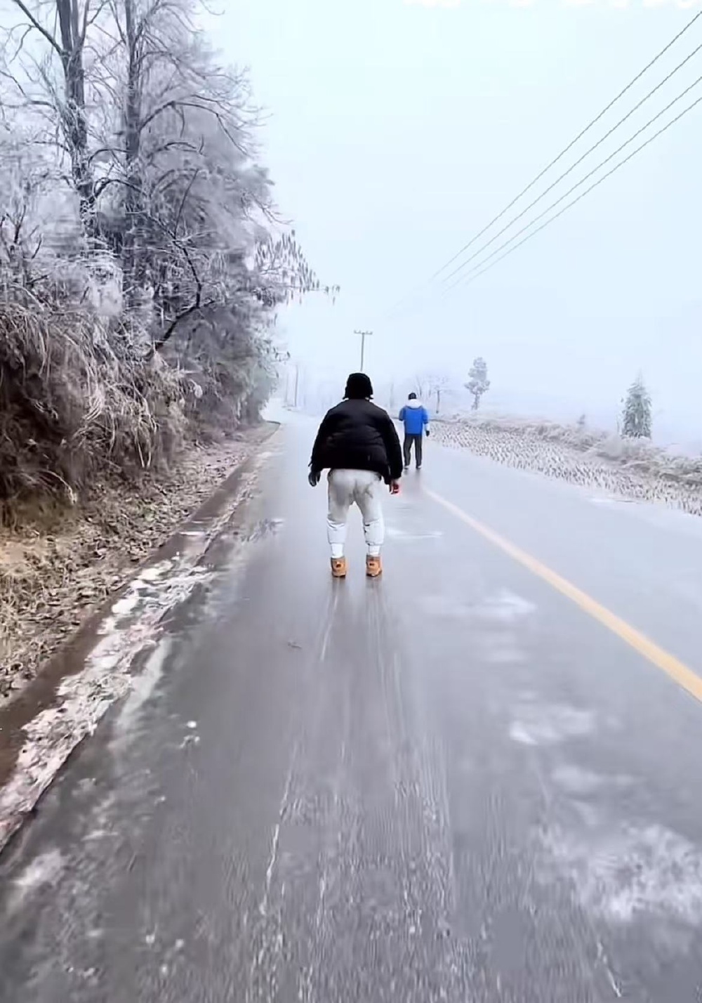 近日,有贵州博主把竹片当滑板滑冰的视频火了。视频里,在结冰的道路上,男子一脚踩一块竹片,在冰面上滑起来,慢慢加速,路边的树木挂着冰,远处白茫茫一片,网友称像极了“御剑飞行”。