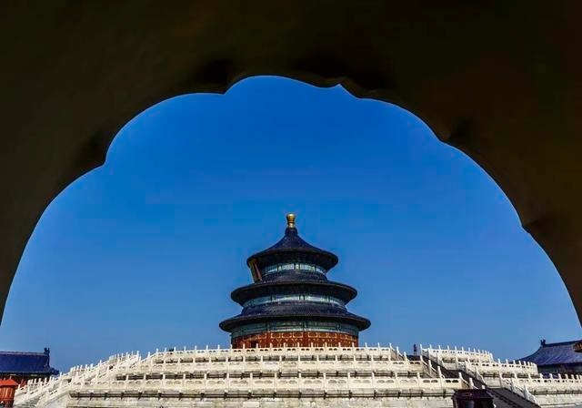 天坛是明清两代皇帝“祭天”“祈谷”的场所,位于正阳门外东侧。坛域北呈圆形,南为方形,寓意“天圆地方”。