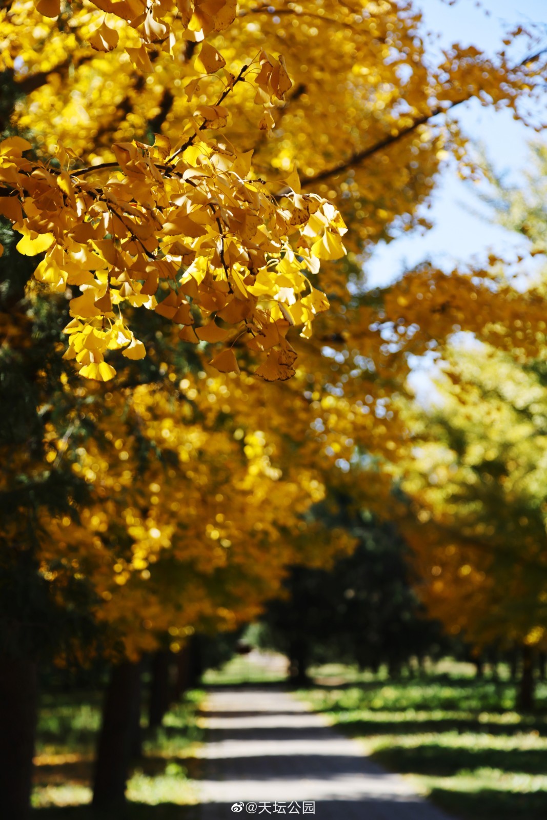 地坛公园的银杏大道已进入最佳观赏期,吸引众多游客前来拍照打卡。