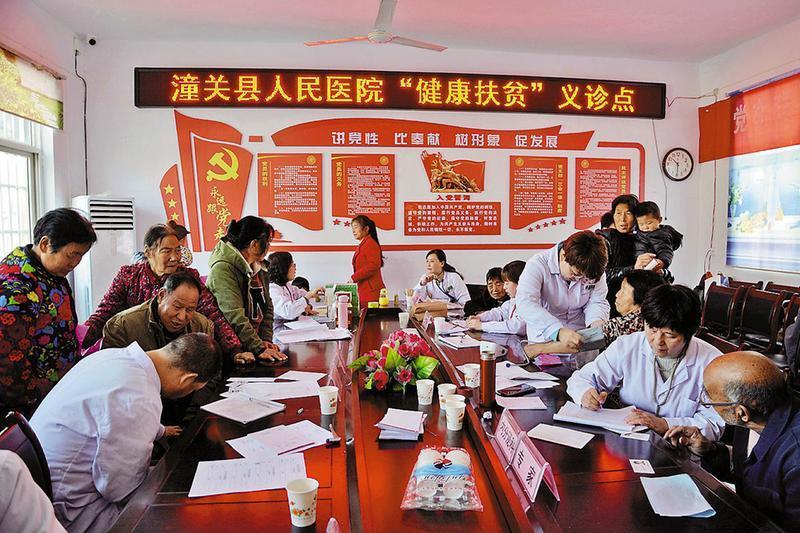 脱贫攻坚战打响以来,医院抽调12名包村干部,坚持“精准扶贫日”到包联村开展帮扶工作,并固定两名干部长期驻村帮扶。先后为3户贫困户进行危房改造,为两户整修围墙并添置生活必需品,为5户因病致贫贫困户开展健康扶贫行动。同时,建立贫困户就医绿色通道,为贫困患者实行“先诊疗、后付费”一站式结算服务,为满足条件的贫困患者先行垫付住院押金。设立10间扶贫病房20张床位,满足贫困患者的就医需要。“感人心者,莫先乎情。”潼关县人民医院将党建优势转化为脱贫攻坚动力,以实实在在的行动,坚持把医疗健康送到群众家里,把最温暖的服务送到群众心里。