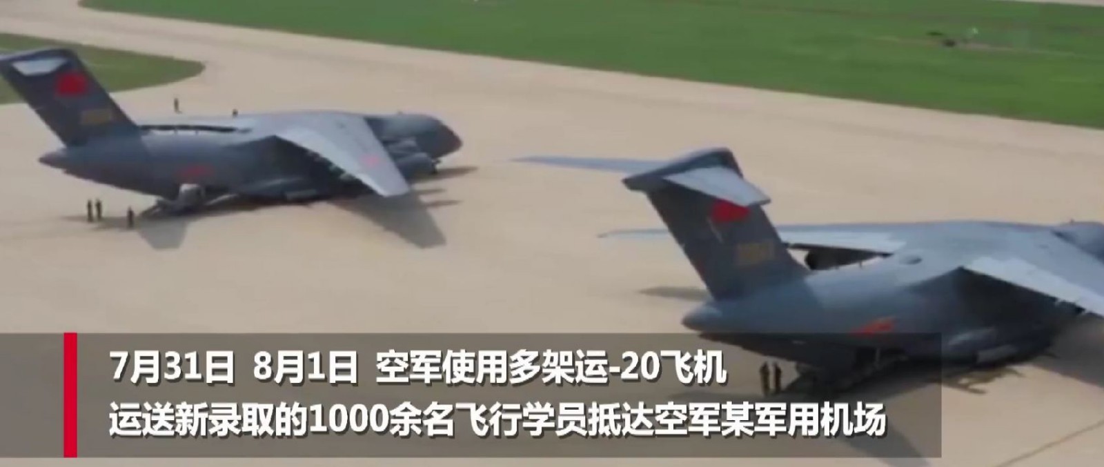 7月31日、8月1日,空军使用多架运-20飞机,运送1000余名新录取的飞行学员入校报到。