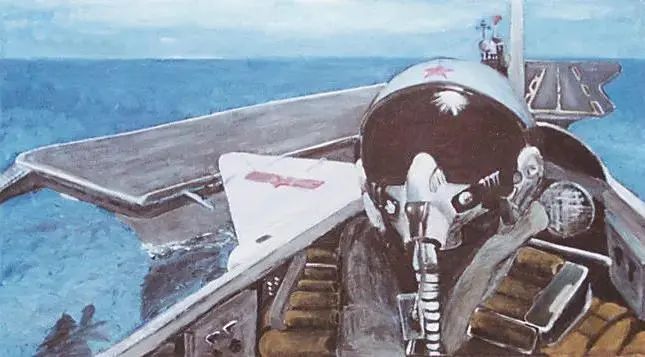 画面中,一名飞行员驾驶舰载机从航母上起飞……