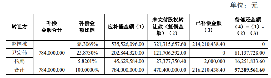 2020年5月,奥马电器回复问询函时称,中融金的业绩补偿进展是,赵国栋已全额偿还补偿金,但另外两位业绩补偿义务主体仍有大量待偿金额。