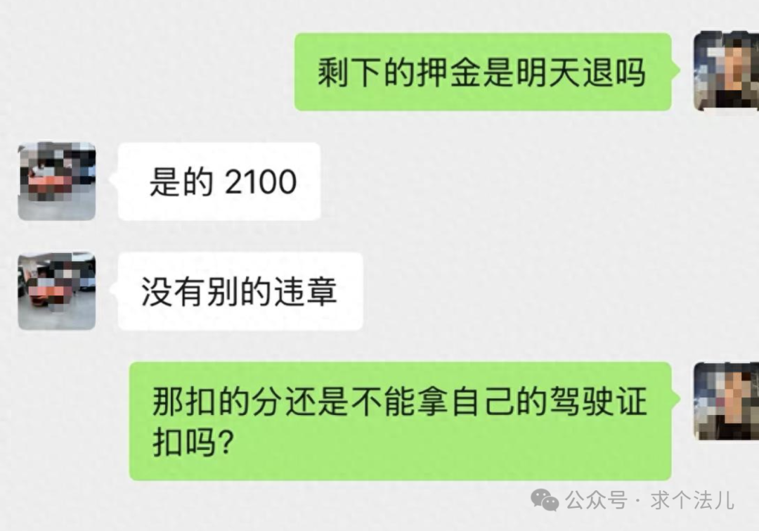 随后,租赁公司直接按照300元1分的标准,从2000元押金中扣除1800元,仅退还剩余押金抵扣100元罚款后的2100元。
