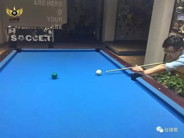 如上图,母球后面有一个球造成击球障碍,为了不碰这个阻挡球必须将球杆抬高,母球和阻挡球越近,打好母球的难度就越大。