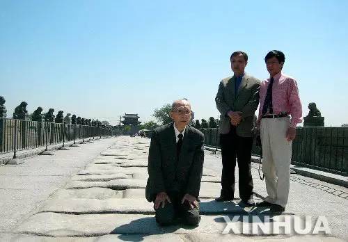 2005年年5月19日,91岁的日本侵华老兵本多立太郎在卢沟桥下跪谢罪。 当时,正是日本个别领导人无视自己的承诺,一而再、再而三地供奉靖国神社,中日关系再一次陷入紧张状态之际,老兵一跪,意味深长。