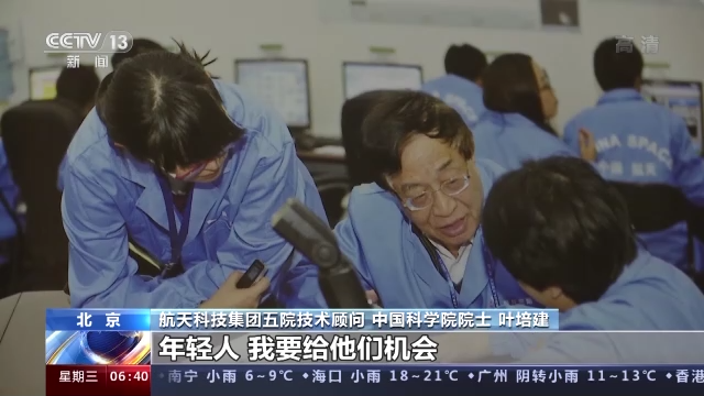 航天科技集团五院技术顾问 中国科学院院士 叶培建:我觉得我现在给自己是什么定位,不去干扰他们的工作。就在他们有困难需要帮助的时候帮一把,他们扛不住时帮一把,如此而已。荣誉都给他们。