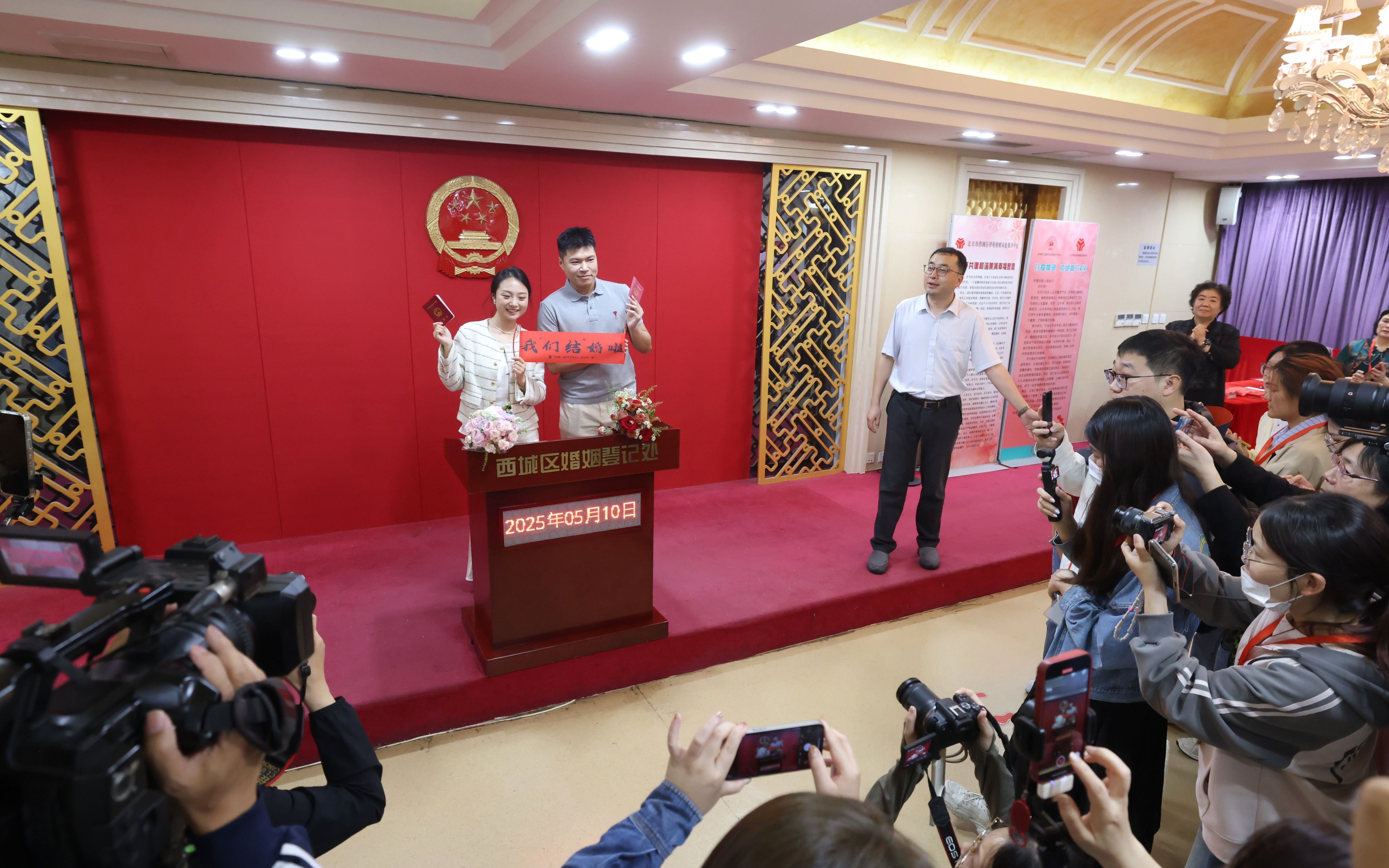 5月10日,北京市西城区婚姻登记处迎来全市首对婚姻登记“全国通办”新人。据了解,新修订的《婚姻登记条例》5月10日起施行,在全国范围内全面实施内地居民婚姻登记“全国通办”服务。