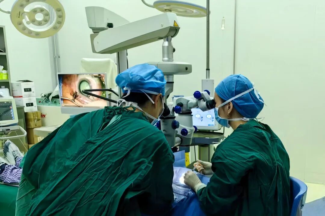 区医院眼科团队经会诊后,为重度白内障患者手术。