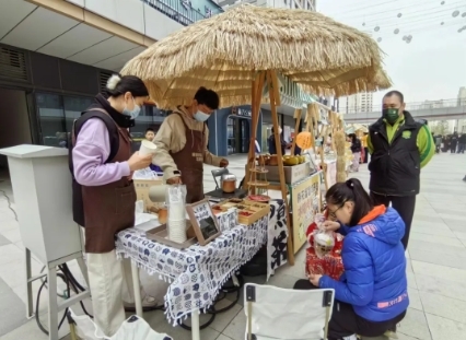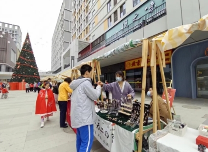 此外,市集区域也是人头攒动,热闹非凡。各种传统手工艺品、特色小吃、文创产品等琳琅满目,吸引了众多市民前来选购。商贩们身着汉服,热情洋溢地介绍着各自的产品,让市民们在购物的同时也能感受到传统文化的氛围。