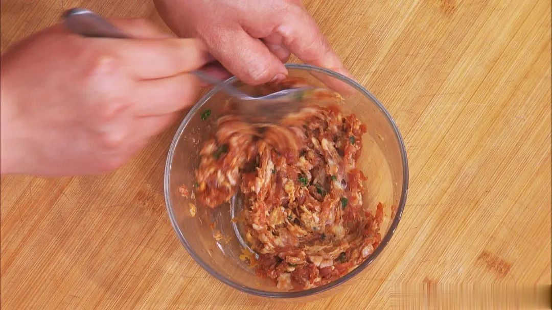 肉馅加少量酱油、半块自制浓汤宝搅拌均匀,挖出来豆腐也放入肉馅中搅匀,酿入豆腐中,撒上薄薄一层玉米淀粉。