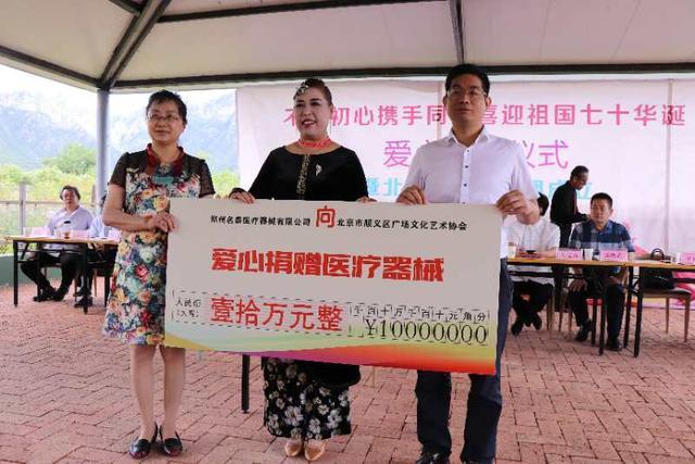 为喜迎祖国七十华诞,贯彻落实习总书记系列讲话精神,落实市委工作部署,开展“不忘初心、牢记使命”主题教育之际, 6月8日至9日,郑州名泰医疗器械有限公司向北京市顺义区广场文化艺术协会爱心捐赠医疗器械仪式,暨北京鸿顺艺术团成立在美丽的竹溪庄园举行。