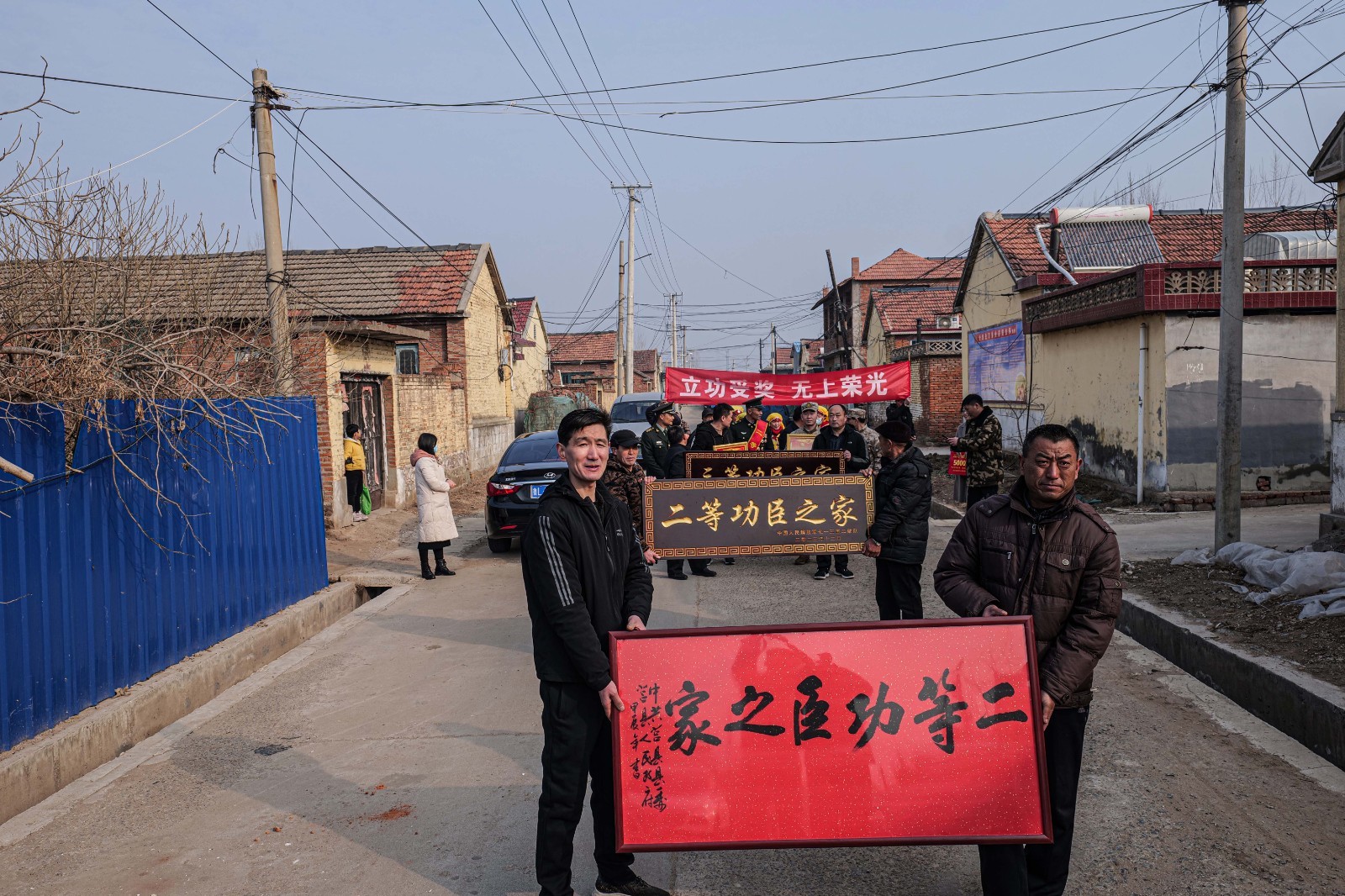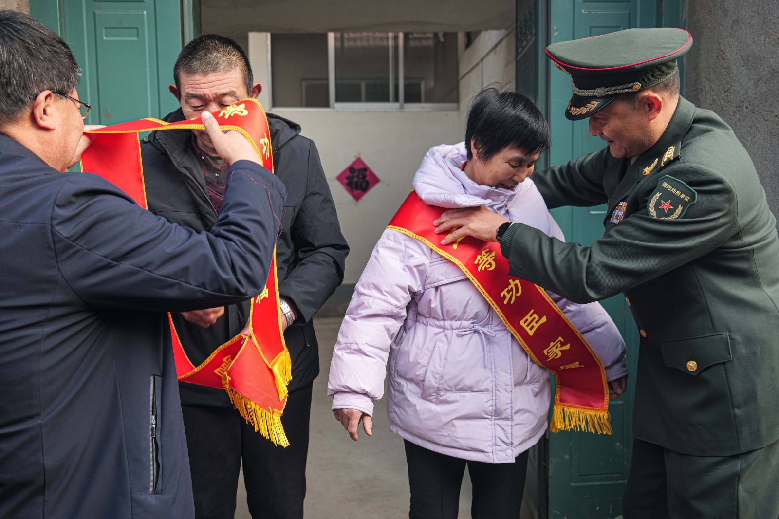 近日,中部战区陆军第81集团军某旅送喜报小分队奔赴山东、湖南、福建等地,跨越千里、走村入户,协同地方武装部、退役军人事务局为立功受奖的官兵送上喜报,为新春喜庆气氛增添了一道荣耀之光。大张锣鼓的浓厚氛围,隆重精心的送喜报仪式,不仅鼓舞了受奖官兵,也让军人家属感受到荣立军功的荣耀。
