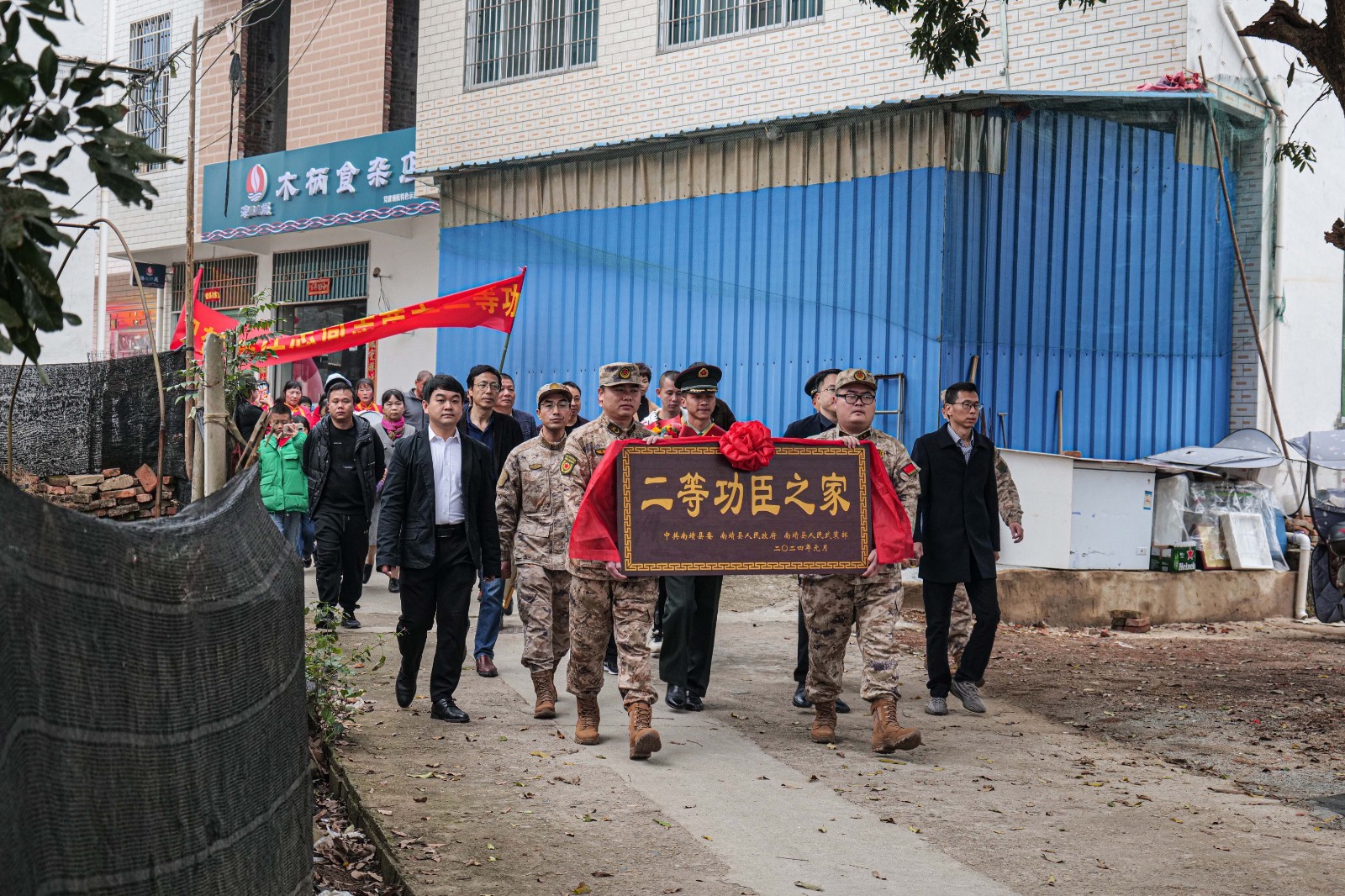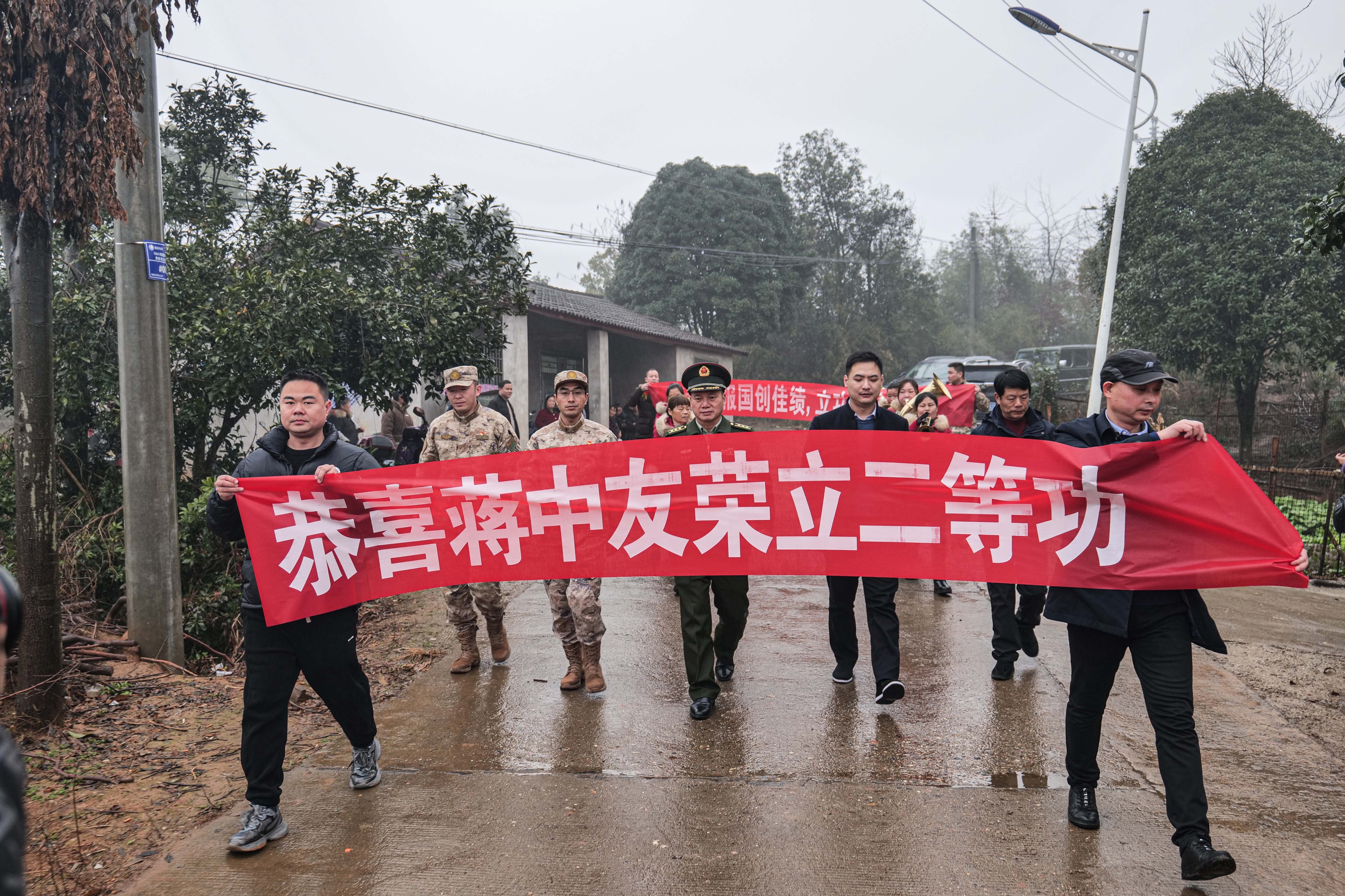 伴随着锣鼓鞭炮声,陈龙伟一家带着喜报和军功章自豪地走在前面。旅领导与其家人亲切交谈,也对家属的默默付出和支持致以崇高的敬意。陈龙伟始终聚焦备战打仗,矢志精武强能,在班长队伍群众性比武竞赛中取得综合第1名的好成绩,被集团军表彰为“十大标兵班长”,先后荣立个人二等功2次,三等功3次。陈龙伟兴奋地说:“荣获组织奖章,既是鼓励,更是激励我要继续发挥带头作用,为提升部队战斗力和单位建设贡献力量。”