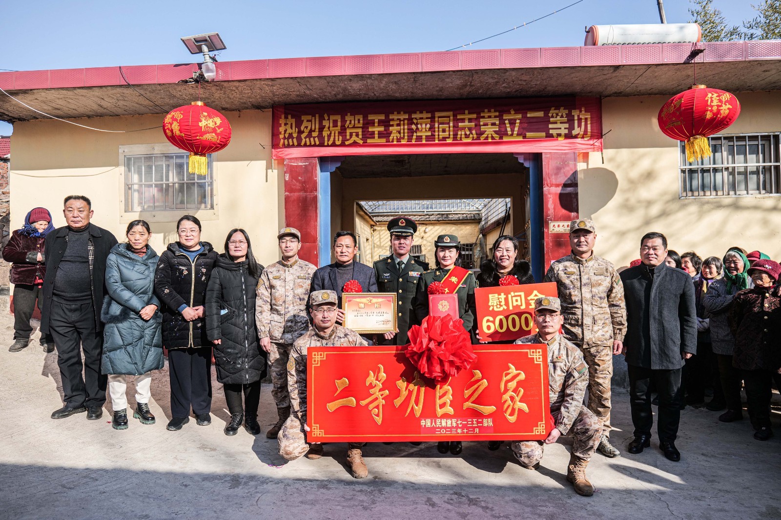在二等功臣王丽萍家里,亲友们围坐在一起互相传看她的二等功奖章,丈夫刘辉看到妻子的喜报格外激动,“我们是双军人家庭,她能取得优异的成绩,离不开单位的培养和支持,我们夫妻俩会以这份喜报为激励,在未来的军旅生涯里接续奋斗、再创佳绩!”入伍12年来,王丽萍始终扎根基层、建功军营,在不久前的集团军班长队伍群众性比武竞赛中斩获女子组冠军,被集团军评为“十大标兵班长”,荣立战备训练二等功。