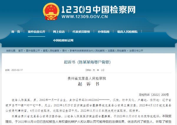 事发第二天,陈某某就因涉嫌盗掘古墓葬罪,被当地警方立案侦查,随后又被警方刑事拘留。贵州省龙里县人民检察院认为,陈某某无视社会风尚和公共秩序,打开棺木,敞露尸骨,非法使用尸骨,其行为触犯了《中华人民共和国刑法》第三百零二条,犯罪事实清楚,证据确实、充分,应当以侮辱尸骨罪追究其刑事责任。