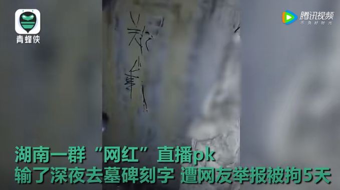 为了博眼球、吸引流量,而在墓地直播的情况,不是没有先例。此前,湖南永顺县的一位网友,向当地警方的微信公众平台留言举报,称有几位主播,在直播平台以“打赌”的形式直播。输了的人,要在深夜前往墓地,在逝者墓碑上写自己的名字,或者进行其他几近“变态”的惩罚。这位网友还发来了当时的直播视频作为证据。