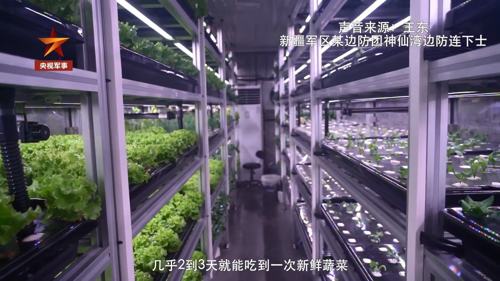 喀喇昆仑高原,海拔5380米的新疆军区某边防团神仙湾边防连,近日迎来蔬菜大丰收。过去官兵们冬天只能吃“四大名菜”白菜、洋葱、萝卜、土豆。现在有了蔬菜工厂,大家能吃到生菜、上海青、油麦菜等更多蔬菜,而且两三天就能吃上一次新鲜菜。