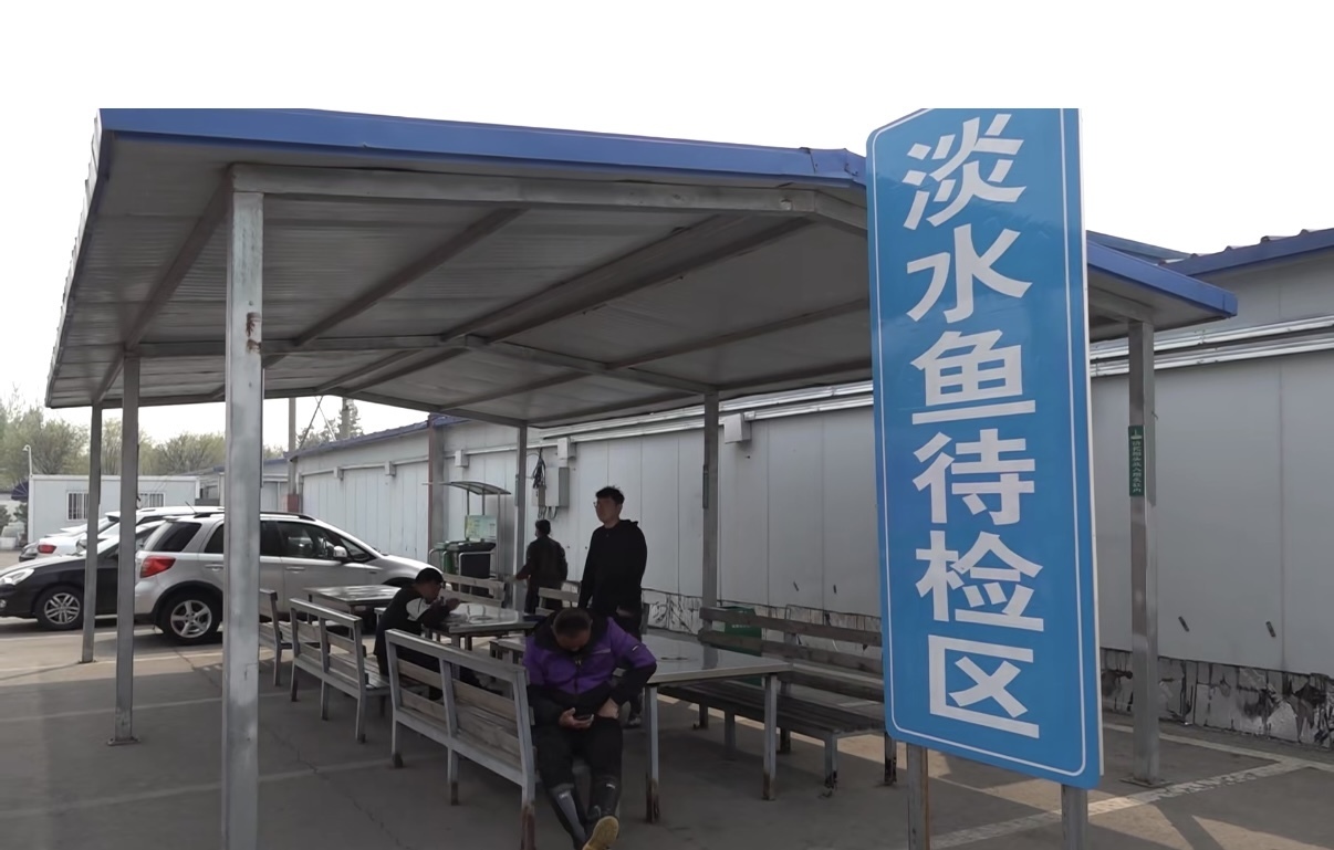 在市场的“淡水鱼待检区”,一辆辆运输车有序排队等待快检。市场业务经理贾书刚介绍,该市场执行“一车一检、一品一检、一户一检”,所有车辆须在待检区接受检测,约30到40分钟可出结果。合格车辆领取入场牌后,方能进入交易区。