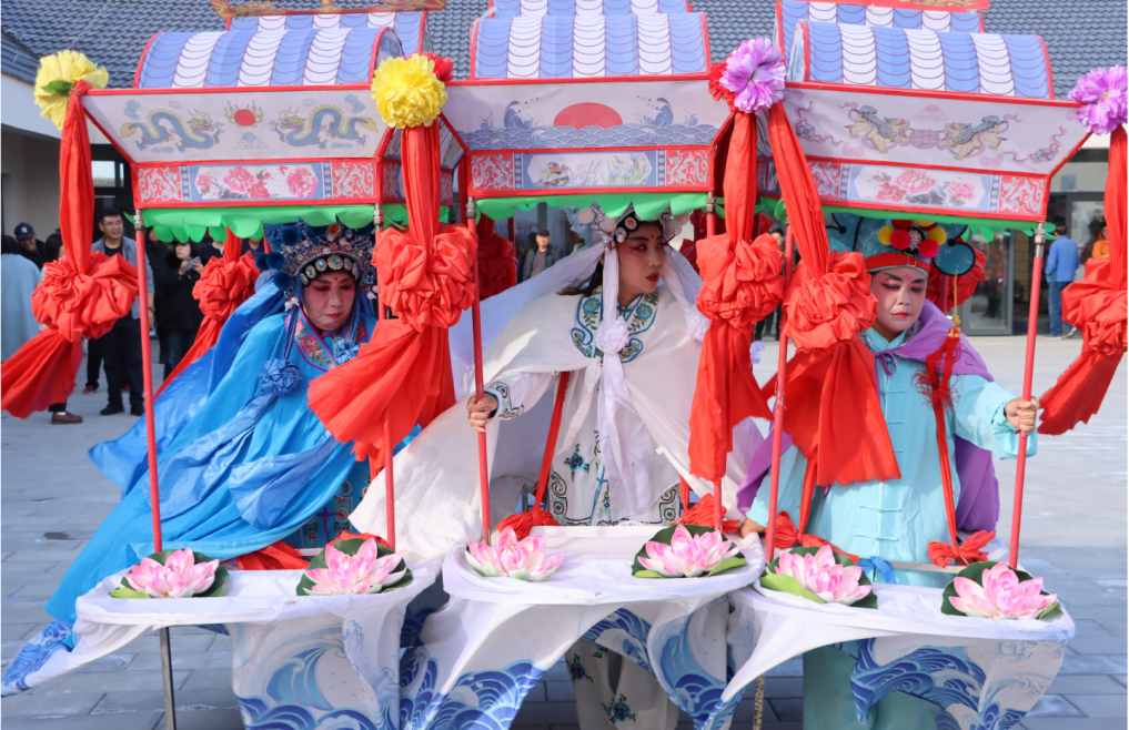 “shua’er”空间与非遗工坊里,游客围在桌子前体验瓦当拓印,柏木熏肉的香气从后厨飘出,旱船表演的锣鼓声此起彼伏。井庄镇腰鼓队的激昂节奏、永宁镇竹马队的灵动舞步、四海镇高跷队的诙谐演绎轮番登场,投壶、射箭等民俗游戏摊位前人头攒动。