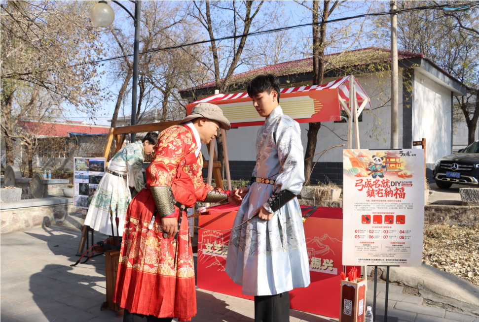 当天上午,分会场三司村新时代文明实践站外,非遗展板依次排开,率先拉开长城民俗文化季的序幕。井庄镇的嫘娘编织、南老君堂的烙印葫芦,永宁镇的上磨糕点、西关戏楼灯笼,四海镇的大庄科高跷、九眼楼长城金石传拓研学课程等图文并茂的展板,将五个乡镇的文化积淀娓娓道来。展厅内,柳沟文创、三司“shua’er”文创、箭杆岭文创与“畅游八达岭”系列产品相映成趣,传统技艺与现代设计碰撞出别样火花。