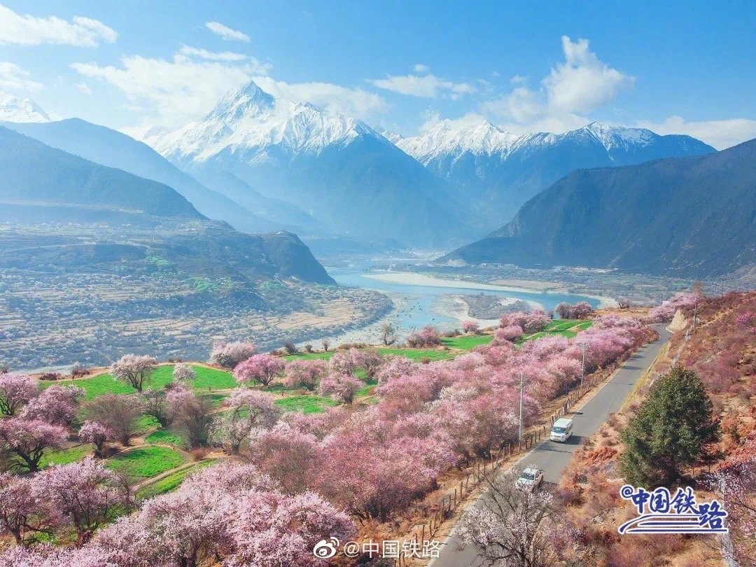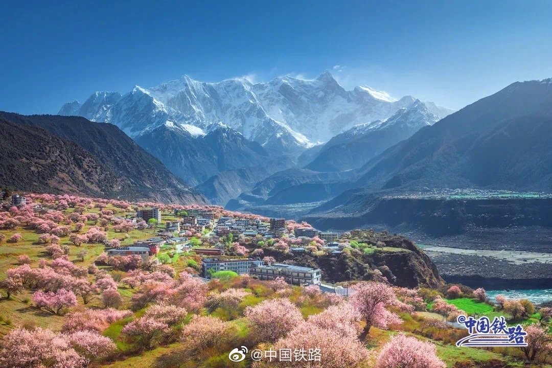 西藏林芝市森林覆盖率超过50%,有着“雪域江南”的美誉。由于海拔较低,气候较好,每到春日,这里的桃花总是在高原率先开放,可以说是雪域高原“最先迎来春天的地方”。漫山遍野的桃花将这里变为一个海拔高度近3000米的“世外桃源”。