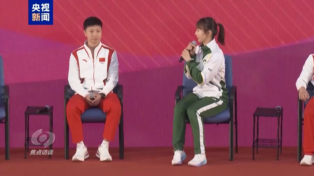 中国澳门运动员 王泳欣:我问了马龙,他是怎么去面对压力还有伤病的,他的回答是很热爱这项运动,我觉得这一句非常打动我。看到他们,很想跟他们一样,成为优秀的运动员,给我们鼓励。